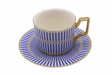 ZK Elegant Printed Ceramic Cup & Saucer Blue with Gold Handle