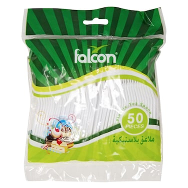 Falcon Plastic Tea Spoon White 50 PCS is a set of 50 white plastic tea spoons.