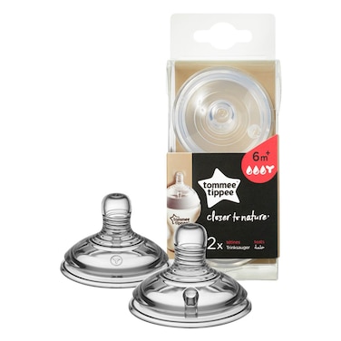 The Tommee Tippee Closer To Nature Thick Feed Teats Clear come in a pack of 2.