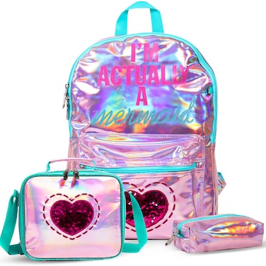 - • 3 in 1 Mermaid Backpack : You will get 1 backpack, 1 Lunch box, 1 Pencil case. • This backpack not only for daily school use, but also for travel, camping, shopping, at the same time, will bring more happiness for your family. • The 3 in 1 backpack is good ideal for various occasions like school, travel, hiking and camping , tourism. This lovely toddlers bookbag is the best choice for back to school, Christmas, New Year, Birthday gifts. • ERGONOMIC DESIGN: The adjustable Wide straps with breathable padded for comfort, back straps for the attaching the bag to the trolley when required. • Water Proof, Dirt Resistant and Machine Washable