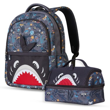 Nohoo Kids 16 Inch School Bag with Lunch Bag Combo Shark - Grey