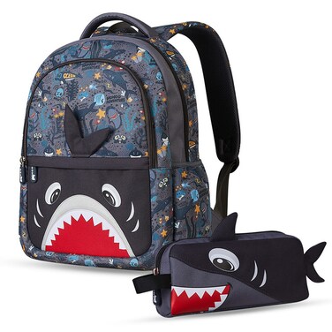 Nohoo Kids 16 Inch School Bag with Pencil Case Combo Shark - Grey