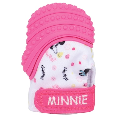 The Disney Minnie Mouse Baby Teething Mitten Chew Toy in Pink is a cute and functional teething accessory for your little one.