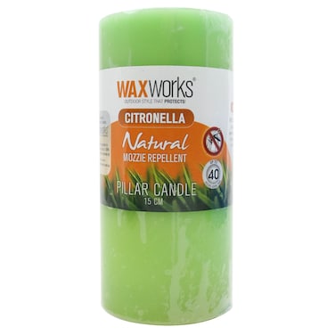 Waxworks Citronella Natural Pillar Candle Mozzie Repellent Green 15cm