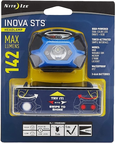 The INOVA STS Head Lamp makes brilliant hands free illumination simple, versatile and comfortable. It features an innovative Swipe-To-Shine interface that allows for simple access to multiple modes - all with a swipe of your finger. Its lightweight body, high quality woven strap and waterproof construction makes the INOVA STS Head Lamp an indispensable lighting tool anywhere high quality hands-free illumination is needed. Run Time: High 4.66H, Low 602H, Waterproof: IPX7/1m, Impact Resistance:1m, Range:84m.