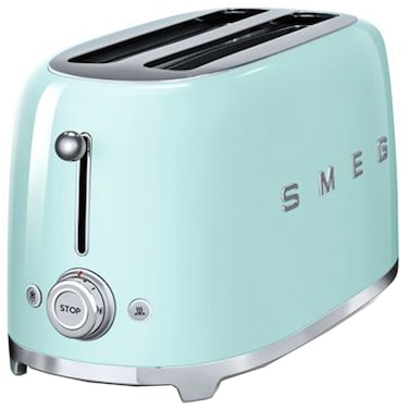 The Smeg 50's Style Toaster 1500W TSF02PGUK in Green is a stylish addition to any kitchen.