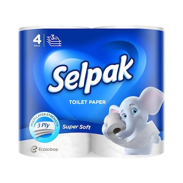 Selpak 3 Ply Super Soft Toilet Paper Rolls White 4 Rolls