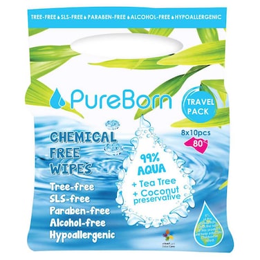Pureborn Chemical Free Baby 80 Wipes Travel Pack