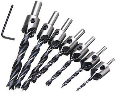 Beauenty - 7 Pcs/Set Wood Countersink Drill Bit Set Boring Counterbore Chamfer Bore Hole Cutter Hss Woodworking Drills Bits 3-10 Mm
