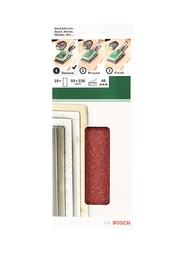- 1 x Bosch 8 Hole 60G Orbital Sanding Sheet (93 x 230 mm, Set of 10, Red)