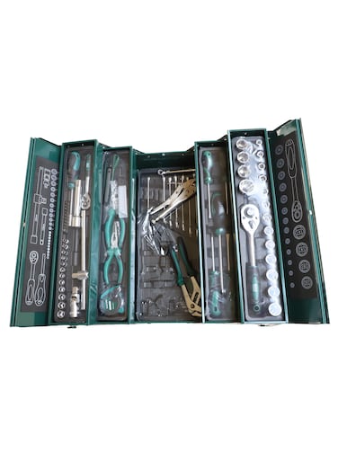 Introducing the Ultimate 85-Piece Socket Set Toolbox – Your All-Purpose Toolkit for Every Task! Whether you're a seasoned mechanic, a diligent homemaker, or an office handyman, this comprehensive socket set is designed to cater to your needs with unparalleled versatility. From fixing a car engine to assembling furniture or tightening office fixtures, this toolbox has you covered. **Unmatched Versatility: ** With its impressive collection of 85 essential pieces, this set is your go-to solution for a wide range of tasks. From basic repairs to complex projects, every socket, wrench, and accessory is meticulously crafted to ensure seamless performance. **Sturdy Metal Box: ** Crafted for durability and portability, the sturdy metal box provides secure storage and effortless transport. Whether you're moving between job sites, working around the house, or tackling office maintenance, your tools remain organized and protected. **From Engine Bays to Boardrooms: ** Our dual 1/2" and 1/4" drive sizes adapt to the diverse array of fasteners you encounter. This means you can effortlessly handle tasks as varied as automotive maintenance, household fixes, and office adjustments – all with a single, high-quality set. **Engineered to Last: ** Made from top-notch materials, these tools are built to withstand the demands of both professional and personal use. You can confidently take on any challenge, knowing your tools are up to the task. **Efficiency at Your Fingertips: ** With size markings and clear labeling, tool selection is a breeze, saving you time and frustration. The included ratchets facilitate quick and smooth fastening and loosening, ensuring you work efficiently, every time. **Where Innovation Meets Comfort: ** Designed with ergonomics in mind, our tools boast a comfortable grip that minimizes hand fatigue during extended use. So, whether you're tackling a vehicle repair, a home improvement project, or an office enhancement, your comfort is assured. **For Professionals. Comprehensive 85-Piece Set: This all-inclusive set is perfect for a variety of tasks, ensuring you have the right tools for any job. Durable Metal Storage: The sturdy metal box not only keeps your tools organized but also ensures their safety during storage and transportation. Dual 1/2" & 1/4" Drive Sizes: Accommodating a wide array of fasteners, these dual drive sizes provide flexibility for different projects. Complete Tool Variety: With sockets, wrenches, and accessories, this set offers a complete toolkit, streamlining your work process. Built to Last: Crafted from high-quality materials, these tools are designed to withstand the rigors of demanding professional use.