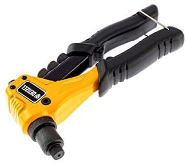 - <p>Denzel riveter is designed for connecting sheet metals, various thin-walled structures and metal profiles with the use of pop-rivets. A three-segment collet clamp is made of Cr-Mo, it ensures reliable fixation of the pop-rivet pin. The tool is equipped with nozzles for four different rivet diameters 3/32 - 1/8 - 5/32 - 3/16 inch. The tool length is 8 inch. The body of the riveter is made of aluminum alloy. Ergonomic handles for easy operation.</p>