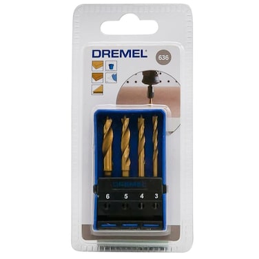 The Dremel® wood drill bit set contains four drill bits with centering point for drilling into wood The different drilling diameters included are 3, 4, 5 and 6 mm The high-grade titanium coating offers high performance and longer lifetime. Offering 35,000 revolutions per minute This drill bit set is an ideal tool for a range of purposes