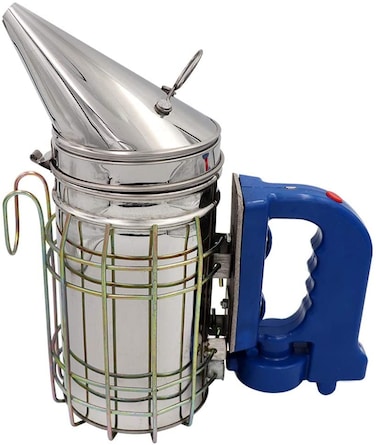 Electric Bee Smoker with Heat Shield, Beehive Beekeeping Tool, Stainless Steel, Blue