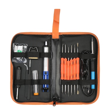 Generic-18pcs/set Soldering Tools Kit 60W 220V EU Plug Adjustable Temperature Soldering Iron Desoldering Pump Iron Stand Solder Tips with Storage Bag