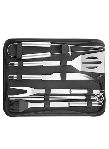 - <li>Fire up the grill and let these barbeque grill tools do the rest<li>Elongated handles with rubber grips keep your hands safe from the heat<li>Grill accessories is a great barbeque set that comes with all that you need to get right into grilling in one package<li>Made of high-quality stainless steel, which makes the barbeque utensils set extremely durable</br></br><li>Colour Name : Silver/Black<li>Model Number : H23055<li>Set Includes : Spatula, Meat Fork, Power Tong, Knife, Basting Brush and 4 x BBQ Skewers