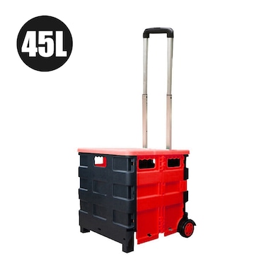 Generic-Cart Folding Shopping Bag Cart Two Wheeled Collapsible Handcart with Lid Portable Rolling Grocery Cart Utility Basket Seat 45L