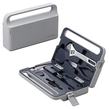 - <p><li>Compact and Portable - A compact tool set best for storing and comfortable to carry around. Fully equipped set with essential tools for a homeowner.<p><li>Modern Tool Set Design - Clean and smooth lines, in a captivating gray that fits into any modern interior. Tough ABS material outer case. Fine texture and resistant to wear. Hidden side buckles, for a smooth and neat buckle opening experience.<p><li>Multipurpose Screwdriver - Anti-roll surface and magnetic bit holder design to perfectly install every screw. Comfortable and easy to hold and control.<p><li>Claw Hammer With Rubber Cap - Magnetic nail starter design, for short or long nails. Automatically collects and places the nail for a one-handed operation. It includes a non-slip rubber cap to protect work surfaces.<p><li>Self-lock Measure Tape - 10 feet (3m) non-sharp measure tape with a self-lock system. Smooth retraction with one press. Accurate and safe to use.