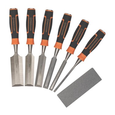 Magnusson Wood Chisel Set, SF28 is a great tool to have for DIY projects Set includes 6 mm, 12 mm, 20 mm, 25 mm, 30 mm and 40 mm chisels plus oil stone in a carry case Tempered wood chisel set has polypropylene (PP) & thermoplastic rubber (TPR) handle Standard: BS 1943:1989