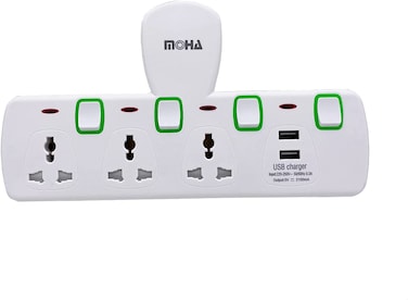 Multi Plug Extension Power Adapter with 2 USB, Moha Double Extender Wall Charger Socket 3 Way Multiple Universal Electrical Outlet Adaptor, Charging Station for Home, Office