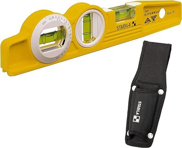 Aluminium cast profile with milled measuring surface, 1 vertical and1 horizontal vial, capable of being rotated through 360°, and 1 rare earth magnet. Measurement accuracy in normal position 0.029° = + 0.5 mm/m, 0.043° = 0.75 mm/m in reverse position.