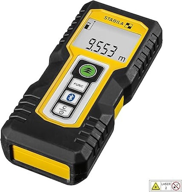 Compact, easy-to-use laser with integrated Bluetooth® Smart 4.0 technology enables measurement data to be wirelessly transferred from the laser to a smartphone or tablet. Free STABILA Measures app lets you transfer measurements directly to photos of the building site or drawings . 4 basic measuring functions: length, area, volume and continuous measurement. The laser delivers quick measurement results and assists you in your daily work, when calculating how much material is needed. The large digits and display lighting make it easy to read. Impact-resistant housing with shock-absorbent STABILA soft grip casing. Designed for measurements up to 50 m