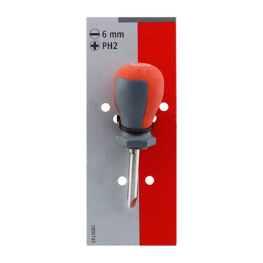 2 i 1 tool with Phillips slot screwdriver tips. Rubber coated grips for comfort. Durable steel shank. Large handle for comfortable use.