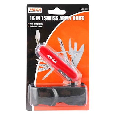 Mega 16-In-1 Swiss Army Knife With Pouch 08176 Red