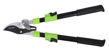 Yardsmith Telescopic Ratchet Bypass Loppers Extendable with Dual compound action provide high quality carbon steel blades offering 25mm (1 inch) clean cut capacity for pruning tree branches.These secateurs edge length 9.5cm, 40 degree wide open features a blade locking mechanism to prevent any injury.The aluminium tubular handles are ergonomically designed for effortless gardening.we pride ourselves on having the best and right tools.Our products are manufactured to the highest quality standards and offer best reliable service.