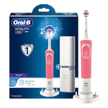 Oral B Vitality 200 Electric Rechargeable Toothbrush With Travel Case Pink