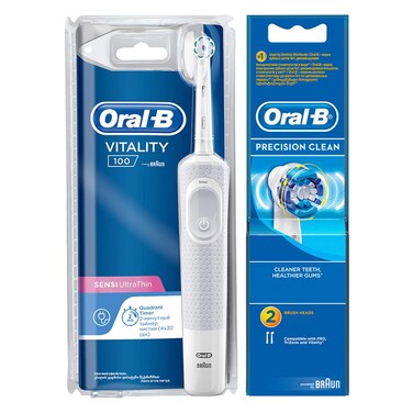 Oral B Vitality D100 CLS Sensi Ultrathin Rechargeable Toothbrush + EB 20-2 Brush Head Bundle