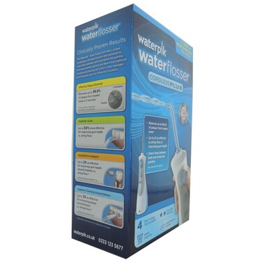 Waterpik Water Flosser provides a unique combination of water pressure and pulsations to clean deep between teeth and below the gum line, removing harmful bacteria and debris that traditional brushing and flossing can't reach. It also massages and stimulates gums for enhanced circulation.