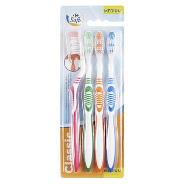 Carrefour Classic Medium Soft Family Toothbrush Pack of 4