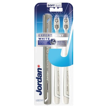 Jordan Clinic Shiny White Soft Toothbrush With Hard Case Multicolour 3 PCS