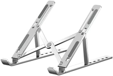 The laptop stand comes with a nice carrying case to keep it from getting scratched.The laptop riser has rubber feet on the bottom so it won't slide on the table.With an elegant design, the laptop stand supports the laptop well and confidently.This laptop stand can be adjusted small enough to fit your tablet or even your phone.Not only is this laptop stand super lightweight, it will never hurt your fingers.Laptop stand is easy to fold for storage,You can easily put it in your bag and take it with you,for use in cafes or trains.