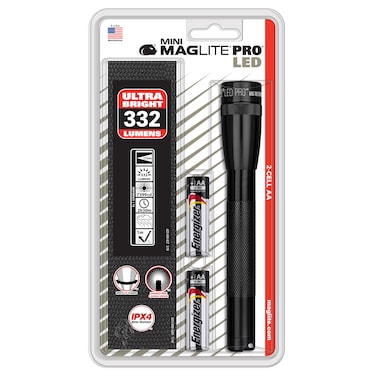 - The iconic look of our original Mini Maglite® 2AA flashlight, introduced more than a quarter-century ago, is still seen in this portable lighting device. But there’s one big difference: A state of the art LED light engine that provides a high intensity light beam. The Mini Maglite PRO includes the same classic simplicity of function. Twist head; On/Off and a beam that can be adjusted from an intense spot to a wide area flood. The Pro includes a lanyard ring tailcap and is built from high strength aluminum alloy tough enough to last a lifetime of use. So whether you are into outdoor activities such as, camping, hiking or are a professional, aircraft mechanic, security, technician or just need a portable light with a high powered light beam the iconic Mini Maglite Pro is second to none. Ultra bright projecting LED beam producing 332 lumensSpot-to-flood focusing just by twisting the headSimple function - just twist the head to turn on and offCandle mode - unscrew flashlight head, place head down on a stable flat surface and set flashlight barrel into head
