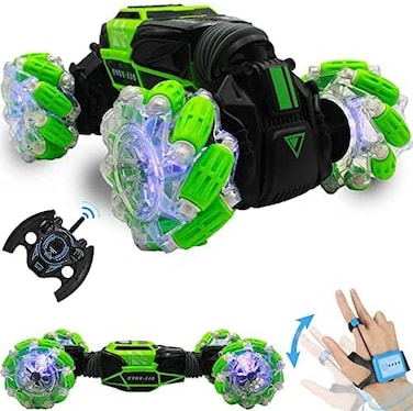 - Generic 4Wd 2.4Ghz Skidding Stunt RC Car With Off Road Tires, Remote Control Car With Gesture Control Band, Transforming Toy With LED Lights Spin 360 Degrees, Green