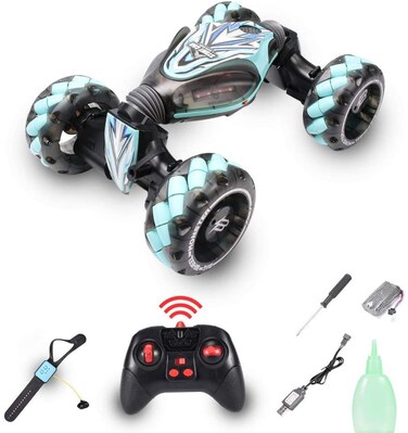 Stunt RC Car with Smoke effect, 4WD 2.4GHz Remote Control Car With Gesture Control Band, Transforming toy with off road tires 360° turns with LED Lights RC drift cars for Boys Birthday