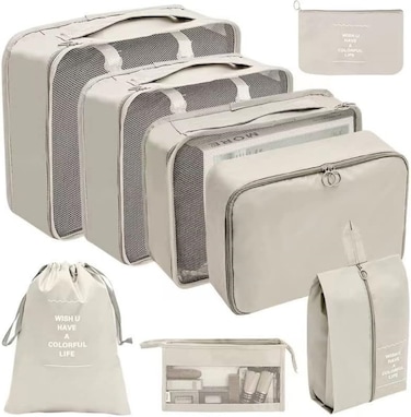 7 Set Packing Cubes Clothes Storage Bag Luggage Packing Organizers for Travel Accessories(Beige)
