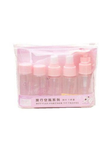 Generic 7Pcs/Set Travel Kit Empty Lotion Cosmetic Makeup Case Container Spray Bottle Pot Portable Refillable Bottle(Pink) Pink/Clear 25g