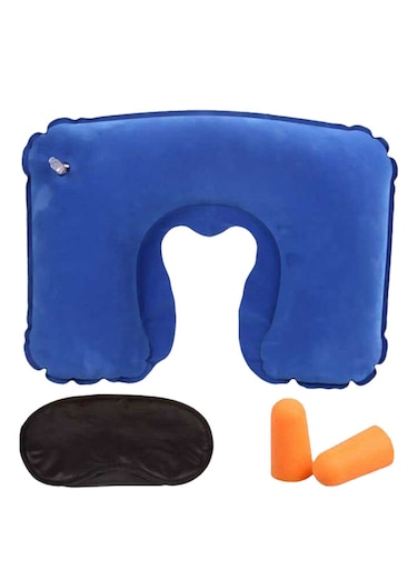 Generic Soft Travel Pillow With Eye Cover And Ear Plugs Blue 44x27centimeter