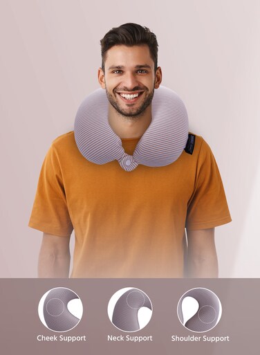 Travel Pillow Memory Foam Neck Pillow, Comfortable & Breathable Cover, U Shape Head Pillow with Portable Storage Bag, Sleep Mask and Earplugs for Airplane, Car, Train, Bus and Home Use