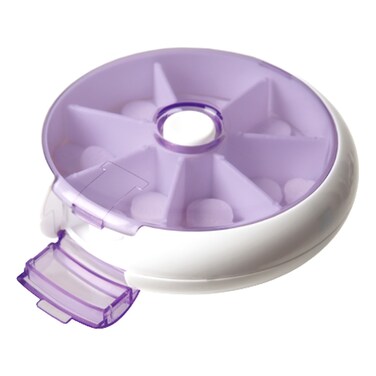 With seven individual compartments, labelled with the days of the week, it allows you to easily organize and store your pills for each day. The compact size of 98mm diameter makes it perfect for travel or everyday use.