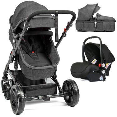 Teknum 3 in 1 pram stroller by SAMBOX, makes your baby travel in luxury and will surely give baby a royal look! Made from highest quality of organic linen, this is most convenient for baby skin. This premium Stroller in a 3 in 1 gear with wide bassinet, multi - position seat, fully adjustable canopy and handlebar, easy installation and collapse, stable aluminum alloy frame gives it a premium feel and shock absorbing tires offer the highest safety to babies. The umbrella like canopy and a wide storage basket below makes it a winner of all.