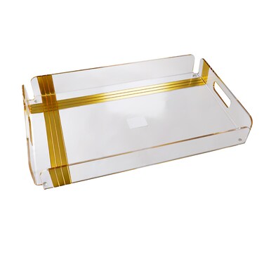 AlHoora 43x26xH5cm Acrylic Serving Tray With Handle with gold Design