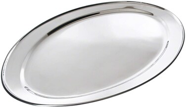 - Stainless Steel Oval Serving Tray. Classic serving trays to carry and display various foods. Used by caterers, hotels, restaurants. Food is more enjoyed when it's easy to serve and nicely presented. Durable, easy to clean and long lasting.