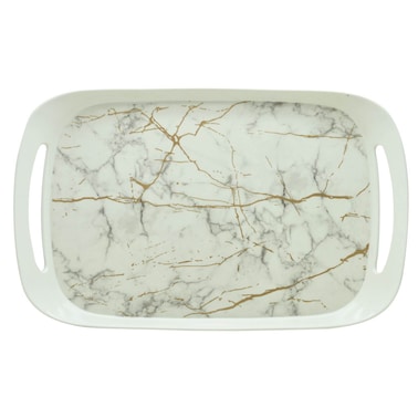 RK is a trusted name across India for its premium range of Melamine products. Bring a smile on the face of your guests by serving them snacks and other refreshments in the beautifully designed Dinelite serving trays. This stylish and elegantly printed tray is made of premium quality Melamine, ensures longevity. Dinelite melamine serving tray is perfect for home, kitchen and offices. The tray is stain resistant, break-resistant, heat resistant, chip resistant, long lasting design and dishwasher safe. This tray is very durable making them great for both, special occasions as well as regular use. This is a dual color elegantly designed tray.