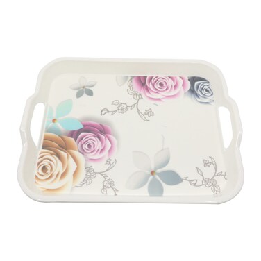 With its multicolour design featuring a vibrant bouquet of flowers this tray adds a touch of elegance to your serving experience. The tray measures 35x23cm making it the perfect size for serving drinks snacks or even as a decorative piece.