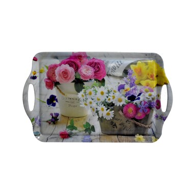 Printed Kitchen Serving Tray with Handle Multicolour 48x30cm
