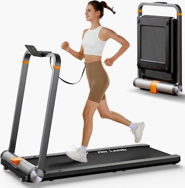Introducing the SKY LAND EM-1288-PRO Dual-fold Treadmill, a revolutionary fitness companion designed for urban living. This treadmill seamlessly integrates into your lifestyle with its space-saving dual-fold design, effortlessly folding to a compact 28 x 6 inches for easy storage under your bed or sofa. Its 2-in-1 functionality caters to both gentle walking and challenging running, with a speed range of 0.5 - 10 kilometers per hour and precise adjustments through the display screen or Zwift app. The 1HP brushless motor ensures durability and quiet operation, while the LED display tracks real-time metrics like speed, distance, time, and calories burned. A spacious 44 x 120 cm running surface, coupled with wear-resistant and shock-absorbing EVA running boards, provides a safe and comfortable workout experience. Ready to use without installation, the EM-1288-PRO includes an emergency safety key with a cable and an auto standby function, prioritizing your safety during workouts. Transform your fitness routine with this versatile treadmill, where innovative design meets performance excellence, ideal for those seeking a convenient and effective urban fitness solution.